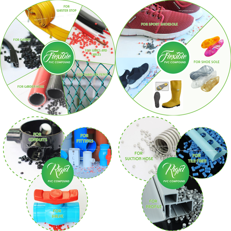 Sự ra đời của các hợp chất PVC dẻo đáp ứng yêu cầu về tính năng cho nhiều ứng dụng. Có thể kể đến như ống y tế, dây điện, khuôn thân ô tô và ống mềm làm vườn,… Ngoài ra, nhu cầu gia công của khách hàng cũng quyết định các loại hợp chất PVC khác nhau. Các hợp chất PVC dẻo có chứa chất hóa dẻo, chất làm mềm giúp mang lại cho chúng đặc tính “giống như cao su”.